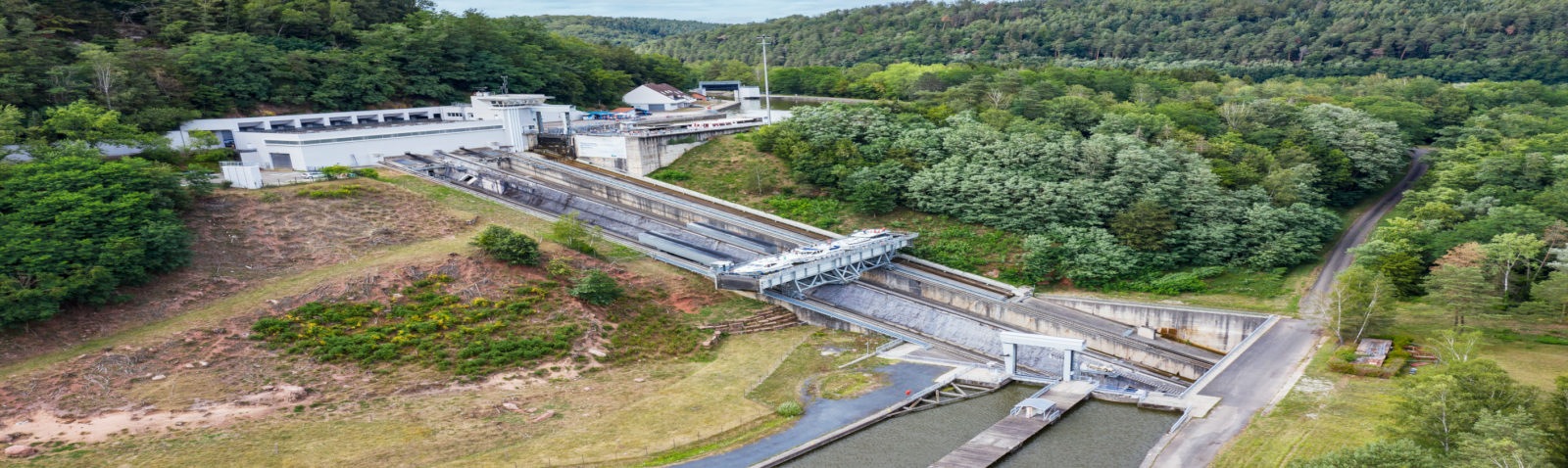 The inclined plane of Arzviller, one of the most remarkable fluvial constructions, and unique in Europe. This boat lift was built in 1969 to replace 17 locks, and enables a change in height of 44 meters. It was closed for a little over 2 years in 2013 following an accident involving a cruise boat, and damage caused by the ferryboat.